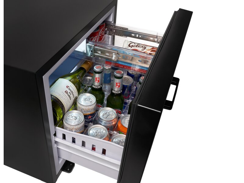Minibar Henley 45L s plnými dvířky je ideálním řešením pro hotely, které chtějí do svého nábytku zakomponovat elegantní a funkční minibar. Díky výsuvnému šuplíkovému provedení pro snadný přístup, nastavitelným policím pro různé druhy zboží a tichému provozu zajišťuje pohodlný a nerušený pobyt hostů. Minibar je navíc vybaven vnitřním LED osvětlením, které nejen moderně působí, ale také efektivně osvětluje obsah. Henley 45L je dokonalou volbou pro vytvoření stylového minibarového řešení do hotelových pokojů.