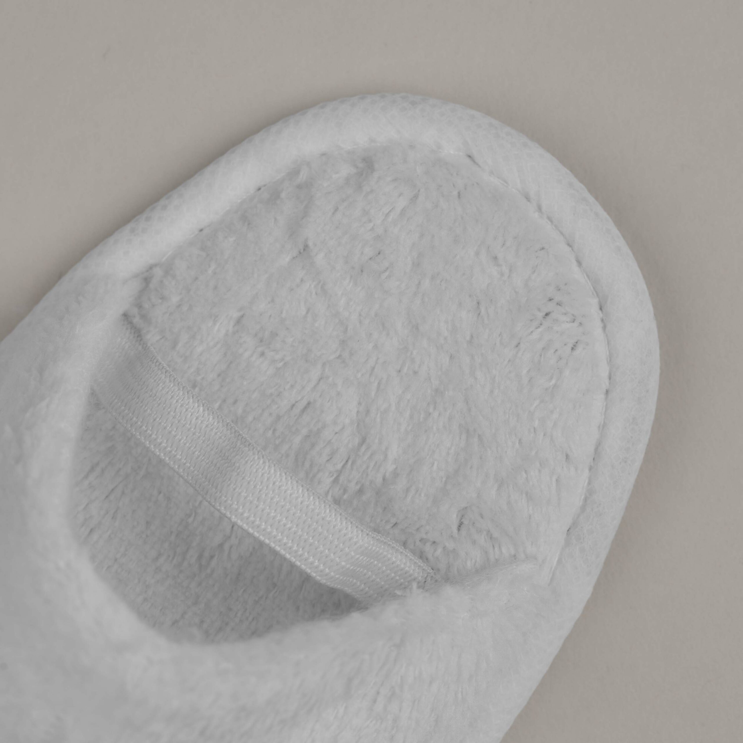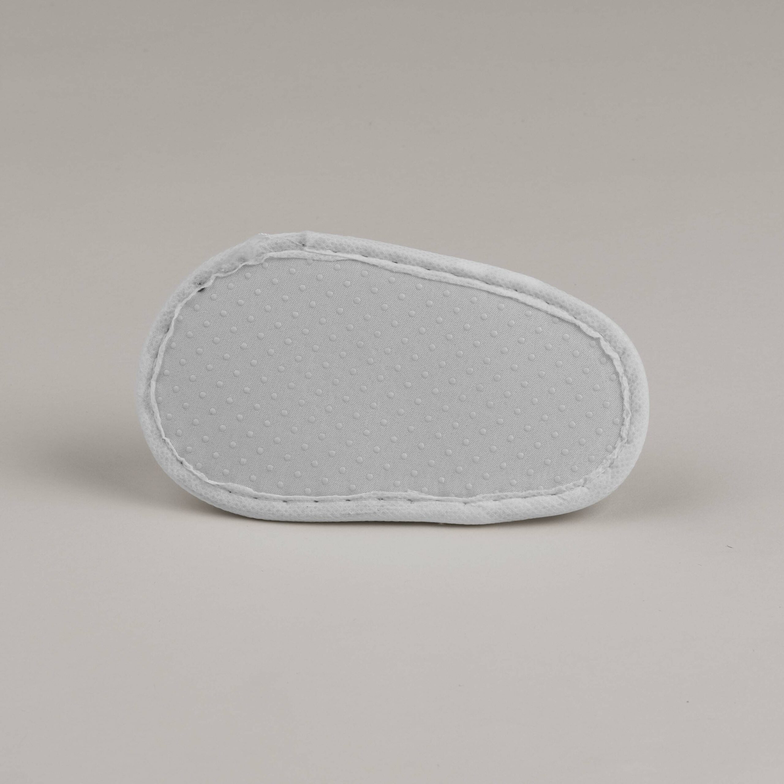 Malé dětské pantofle v bílé barvě mají zavřenou špičku, univerzální velikost a bezpečnou protiskluzovou podrážku. Na zadní straně pantofle jsou opatřené gumičkou, aby malým hotelovým hostům nepadaly z nožiček.