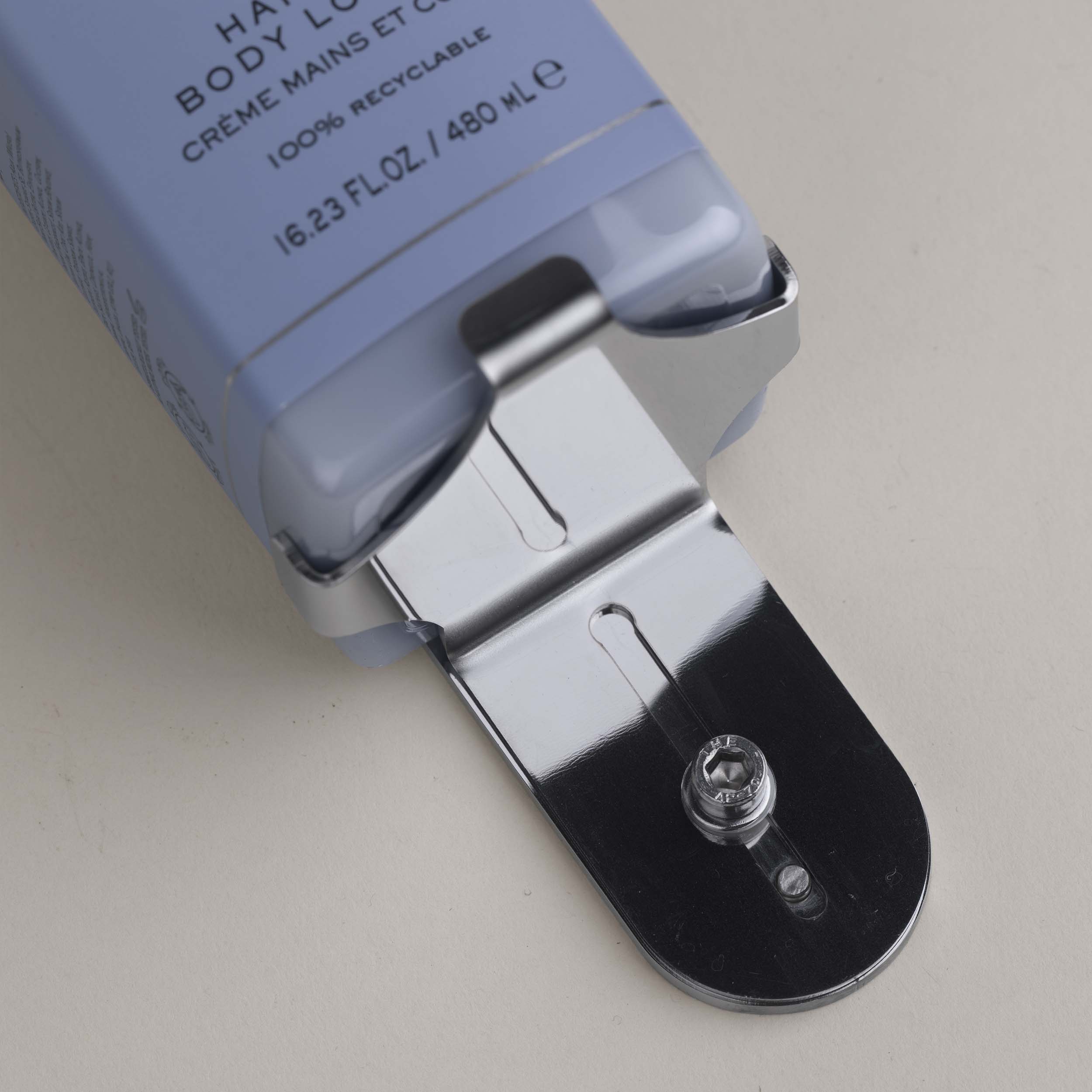 Držák je určen pro velkoobjemové pumpičkové lahve a umožňuje jejich bezpečné uchycení na zeď, čímž minimalizuje riziko pádu, ztráty či nechtěné manipulace. Díky nástěnné instalaci navíc šetří místo na umyvadle a přispívá k čistému, organizovanému prostoru.