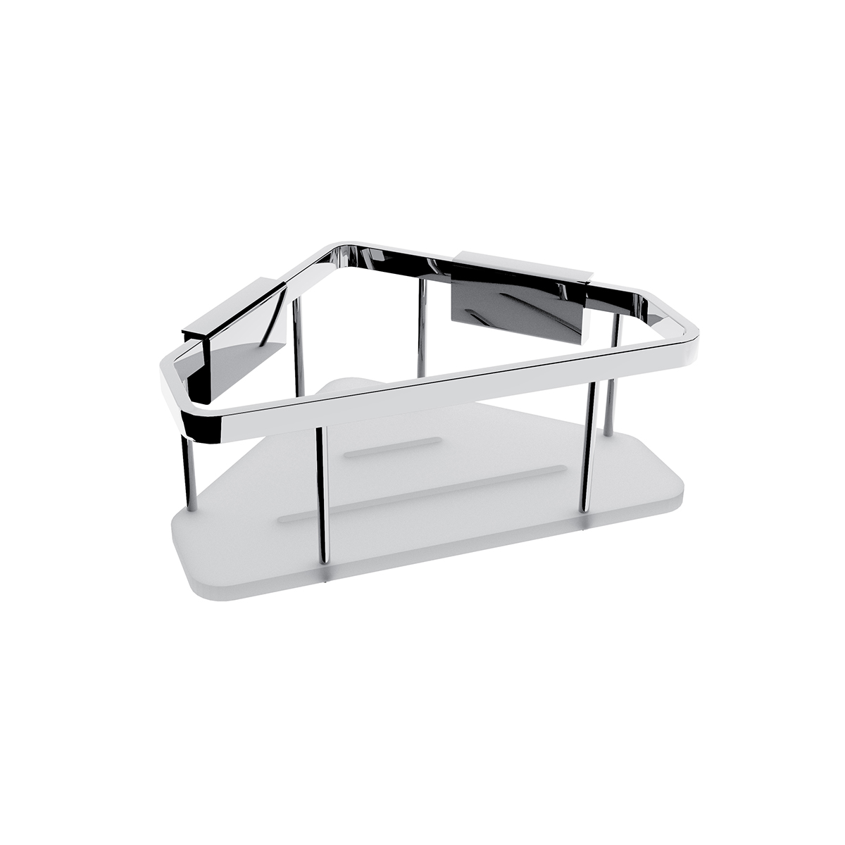 Chromová rohová polička z akrylového skla s chromovanou ohrádkou určená do sprchy nebo k vaně. Minimalistický design koupelnové poličky umocňují použité materiály a vyfrézované otvory pro lepší odkapávání vody. Odkládací plocha poličky je vyrobena z matně bílého akrylového skla o tloušťce 8 mm. Nosnost poličky 3 kgMontáž lepením, vrtáním. Lepidlo MAMUT není součástí balení výrobku. Lze je dokoupit pod artiklovým číslem 35003TU.