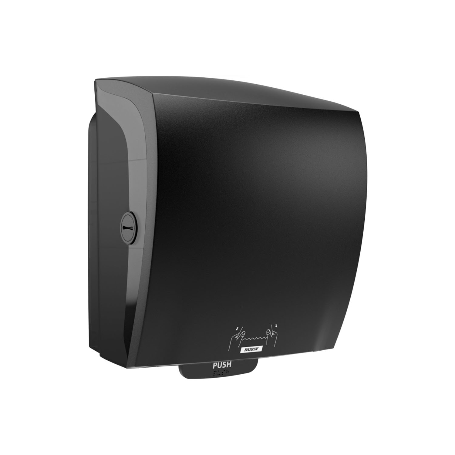 Elegantní a praktický zásobník Katrin System XL v černé barvě je ideální volbou pro profesionální provozy, hotely, restaurace, wellness centra i kanceláře, kde je nutná spolehlivá a úsporná distribuce papírových ručníků v roli.