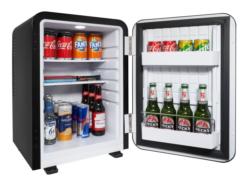 Vychutnejte si nadčasové kouzlo minibaru Radley o objemu 40 l v černé barvě. Zaujme okouzlujícím retro designem. Lze jej flexibilně otevírat zleva nebo zprava. Díky tichému provozu je ideální do jakéhokoliv prostředí a vnitřní LED osvětlení dodává elegantní nádech. Minibar nabízí kapacitu 40 litrů, což z něj činí perfektní volbu pro široký výběr osvěžujících nápojů a možností uskladnění. Zpříjemněte pobyt svým hostům tímto stylovým, tichým a funkčním retro minibarem.