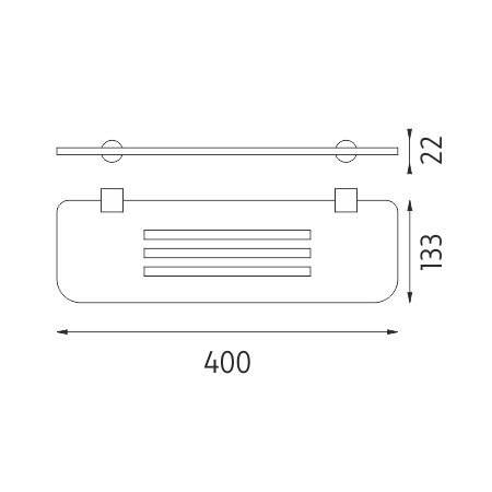 Police s frézovanými otvory. Materiál plexiglass s matovaným povrchem. Délka 40 cm.