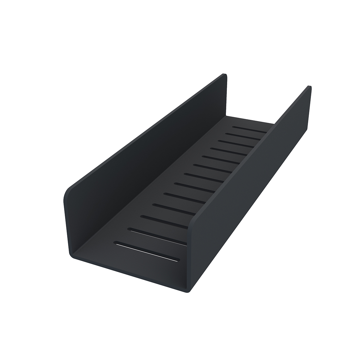Černá koupelnová police je ideální do sprchového koutu nebo k vaně bez nutnosti vrtání. Polička je vyrobena z nerezavějícího kovu s matnou černou úpravou. Zvednutá čelní strana poličky omezuje vypadávání uložených věcí. V poličce jsou vyfrézované otvory pro odkapávání vody zpět do sprchy. Jednoduchá montáž lepením, bez vrtání. Lepidlo MAMUT není součástí balení výrobku. Lze je dokoupit pod artiklovým číslem 35003TU. Nosnost poličky 3 kg.