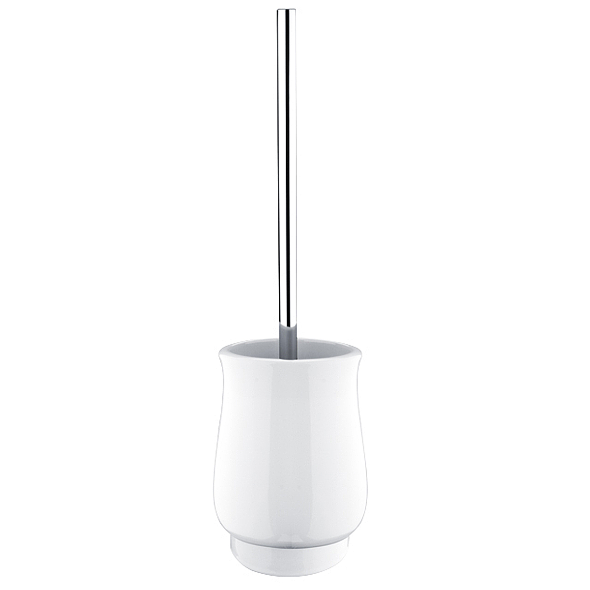 Keramický volně stojící WC kartáč. Rukojeť kartáče kovová. Povrchová úprava rukojeti chrom.
