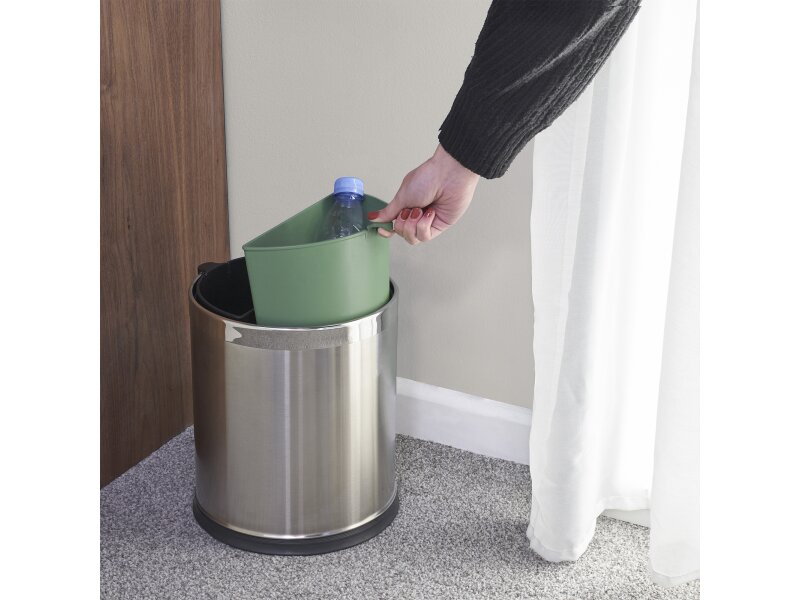 Vložka do recyklačního koše Thornton v zelené barvě je ideálním řešením pro hotely, které chtějí usnadnit třídění odpadu. Díky potištěnému průvodci tříděním pomáhá hostům i personálu snadno rozlišovat recyklovatelné materiály. Navržena je tak, aby pasovala do jednovrstvých i dvouvrstvých košů Corby, a lze ji používat s vložkami i bez nich, což nabízí flexibilitu pro úklidový personál. Snadno omyvatelný design zajišťuje bezproblémovou údržbu a udržuje čistotu a efektivitu v hotelových pokojích i společných prostorách.