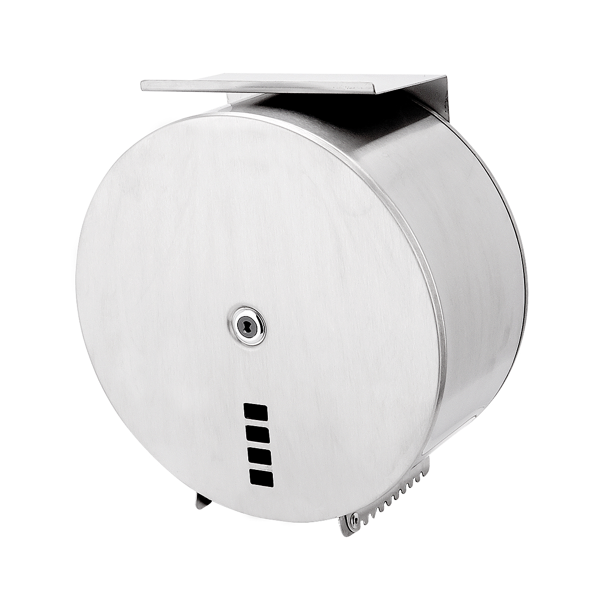 Zásobník toaletního papíru s odkládací policí pro mobilní telefon. Broušená nerez ocel 1.4301.